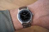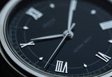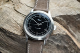 With a more Art Deco take on the Erwin, Habring²'s Jumping Seconds watch, it captures the spirit of watches of yesteryear. Set in a perfectly proportioned brushed stainless steel case with a stepped bezel, the gloss black dial is discreetly original, packed with details, and reveals the rhythmic jump of the central seconds hand.