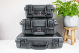 The individual foam watch tubes are custom made for us, and offer flexibility where you need it. Smaller, vintage watches fit just as easily as a watch sized 45mm in diameter or more. The lid on the MONOCHROME Peli Case 10 is lined with similar protective foam bearing our MONOCHROME logo. The double locking mechanism keeps the watches in, but water and dust out.