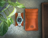The pouch is available in five different colours: Black, Dark Brown, Navy Blue, Olive Green and Tan. The pouch is 140mm in length by 85mm in width and can hold watches of 46mm in diameter and up without any issue.